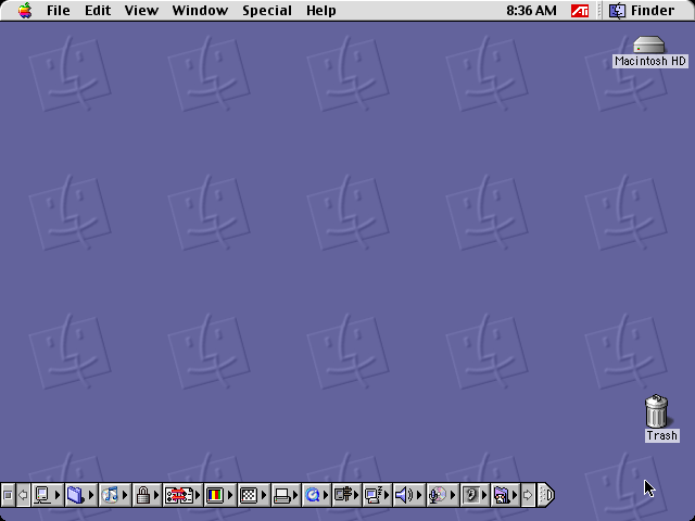 I don’t think I’ll ever be an Apple fan. However, I may become a retro Mac fan. There’s just something aesthetically pleasing about this desktop. The Apple logo is the classic rainbow one! Not the boring white/grey one they use today.