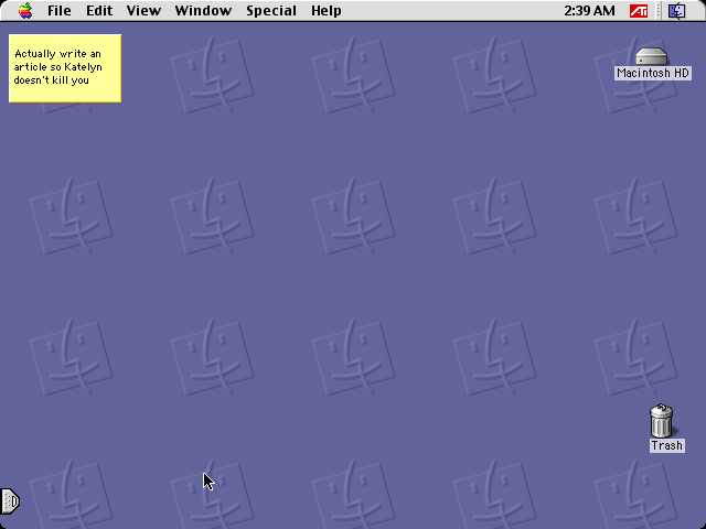 Other than that any game made for OS 9 should work. I’m assuming I can play OS 8 and System 7 games as well but I haven’t quite tested it yet. If you didn’t pay attention to the Stickies screenshot I’m a little past deadline. Update on compatibility later!