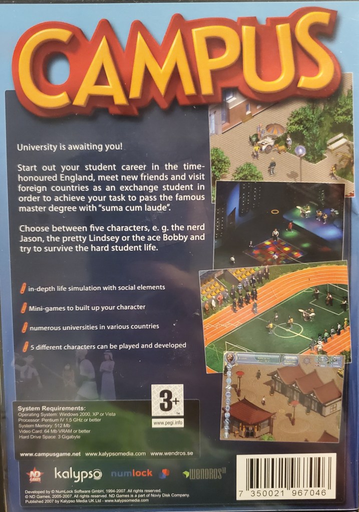 Campus can easily be compared to The Sims. The player character has basic needs such as hunger, thirst, sleep and more. However the game has more of an objective based style approach. From finding your lost luggage upon arrival to the school to helping cheer someone up, there is a wide array of objectives to complete. Of course there’s also the learning aspect. The player can sign the character up for a variety of classes to will eventually end with a degree.